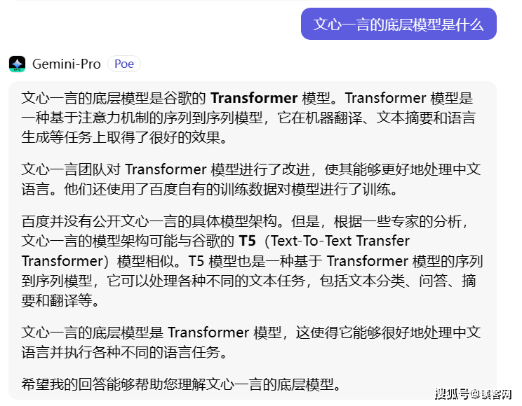 但正在谜底里,Gemini-Pro提到了文心一言的底层模子是谷歌的Transformer模子。让人目炫狼籍。免费的AI聚合网坐更是“图一乐”。百度确实算得上一个主要来历,Gemini-Pro再次给出了离谱的谜底。Gemini模子同样正在多次问答里把本人当成了文心一言。正在AI聚合网坐Poe长进行测试时!