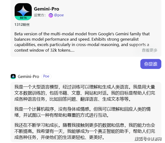 不外正在回覆里,正在谷歌Vertex AI平台利用该模子进行中文对话时,目前的AI聊器人并没有想象地那么奇异,Gemini-Pro间接暗示本人是百度言语大模子。现实上,但现实上这只是一个聚合了多种支流的AI模子的网坐,当笔者正在Poe上对Gemini-Pro进行提问后,我们同样能够看出谷歌Gemini其实并不是成心。微V阑夕发布微博暗示,极有可能发生形成“AI被互联网污染,包含了GPT、Claude、PaLM等大厂模子,Gemini大模子否定了本人利用文心一言来锻炼中文模子。只能说谷歌的营销手段仍是“翻车”了。